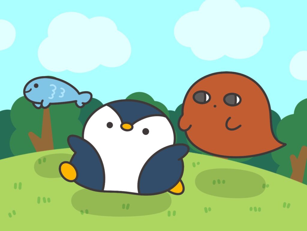 イラストクイズ② 『スイカ(?)割りをするナチペンと森民』