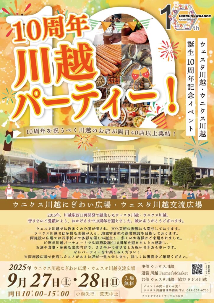 25/9/27(土)・9/28(日)に開催されるウェスタ川越・雲丹クス川越誕生10周年記念イベントにnachiさんが出演します!!両日10:00〜15:00の開催で、nachiさんは土曜日の方にラジオ川越ブースに出没してます!!