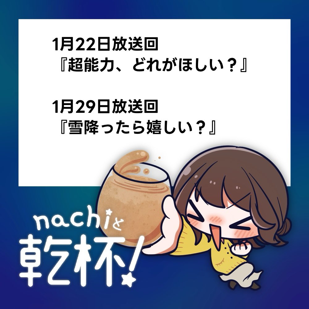 1/9(金)21:00〜 坂戸JUKE BOX にてnachiと乾杯!の公開収録がございます!